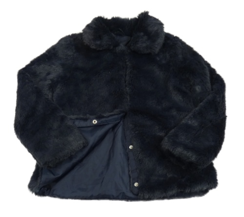 Tmavomodrá kožušinová podšitá bunda s golierikom