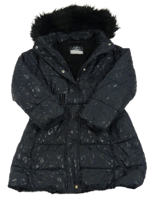 Tmavomodrý vzorovaný šušťákový zimný kabát s opaskom a kapucňou George