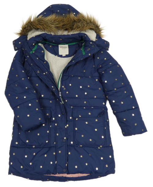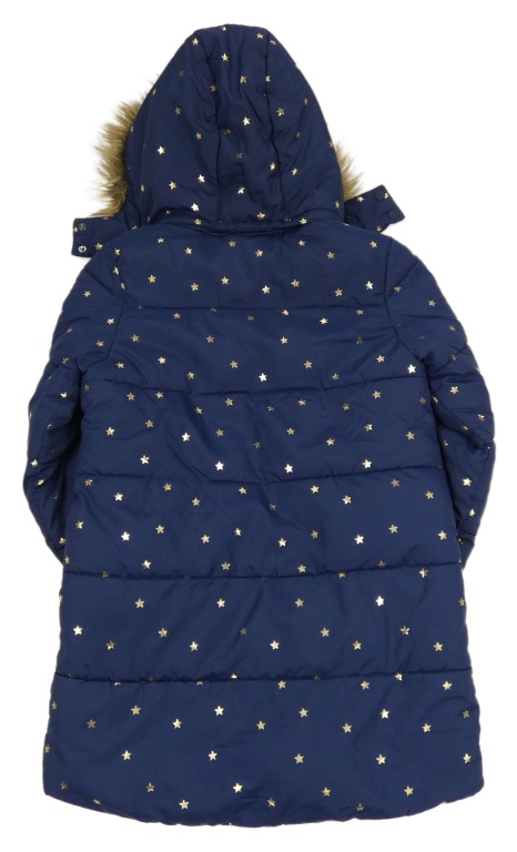 • Tmavomodrý šušťákový prešívaný zimný kabát s hviezdičkami a kapucňou Mini Boden