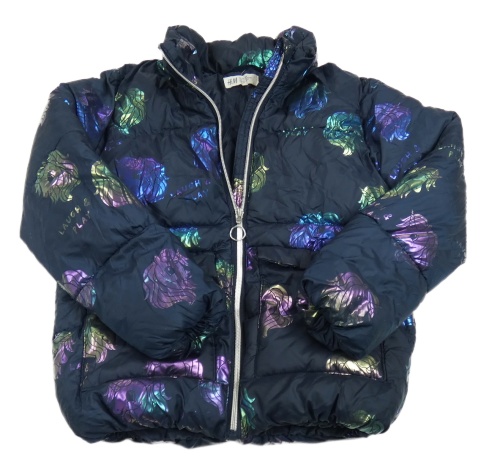 Tmavomodrá šušťáková zimná bunda s jednorožcami H&M