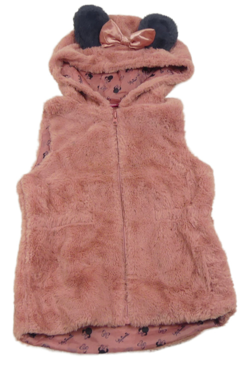 Ružová kožušinová podšitá vesta s kapucňou s oušky - Minnie Disney