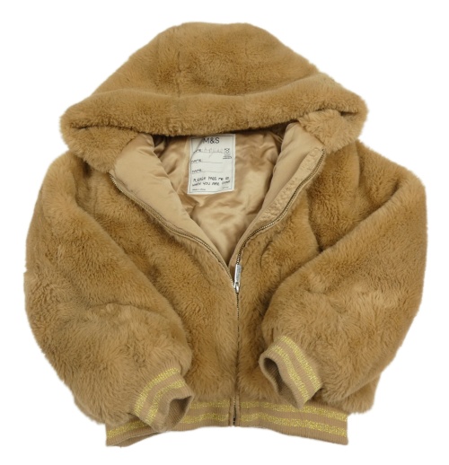 Hnedá kožušinová zateplená crop bunda so zlatými pruhmi a kapucňou M&S