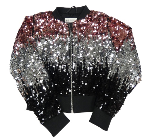 Černo-stříbrno-starorůžový flitrový jarní crop bomber H&M