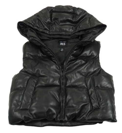 Čierna koženková zateplená crop vesta s kapucňou New Look