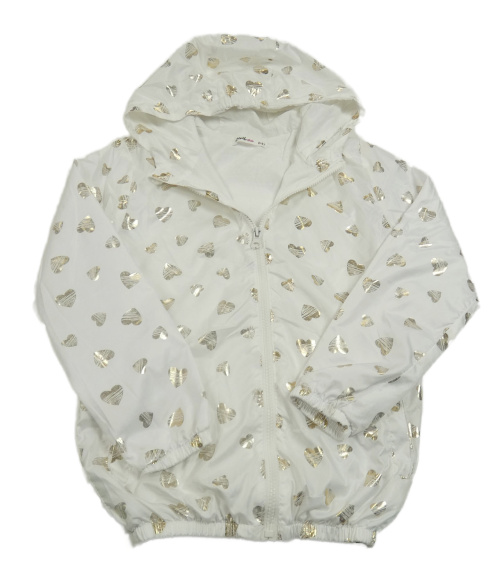 Biela šušťáková jarná bunda so srdiečkami a kapucňou Civil