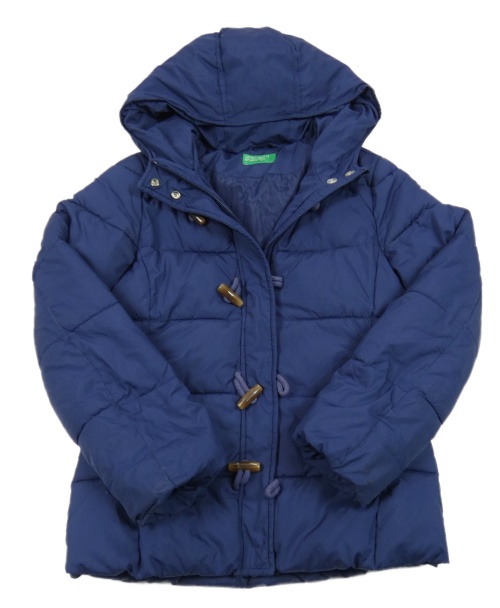 Tmavomodrá prešívaná šušťáková zimná bunda s kapucňou Benetton
