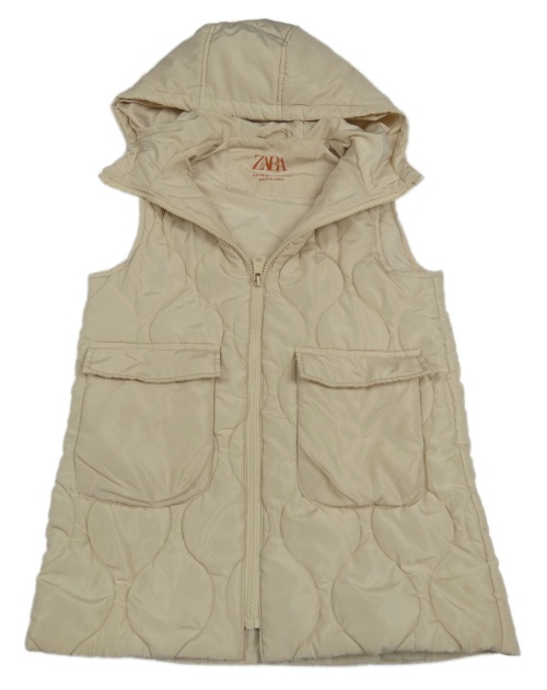 Béžová šušťáková prešívaná zateplená dlhá vesta s kapucňou Zara