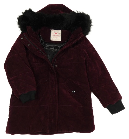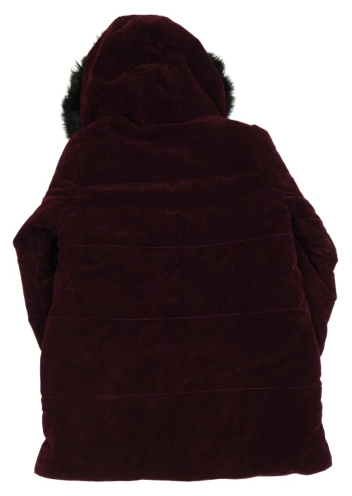 Vínový prešívaný semišový zimný kabát s kapucňou s kožešinou George