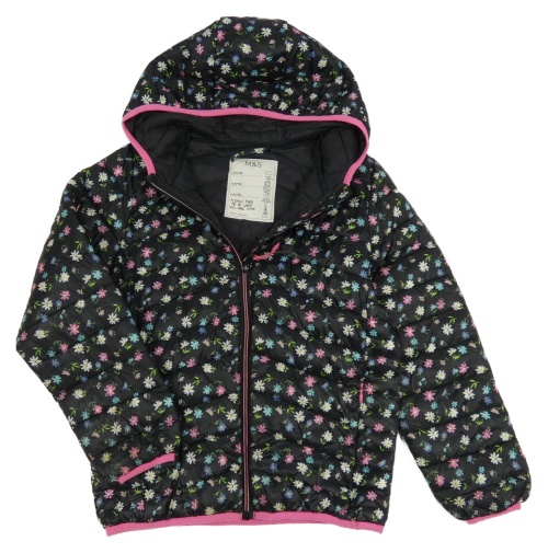 Čierna kvetovaná šušťáková zateplená bunda s kapucňou M&S