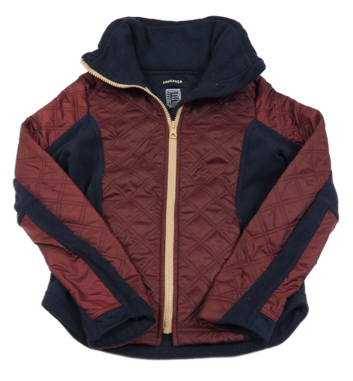 Mahagonovo-tmavomodrá prošívaná šusťákovo/fleecová funkční jezdecká lehce zateplená bundomikina FOuganza