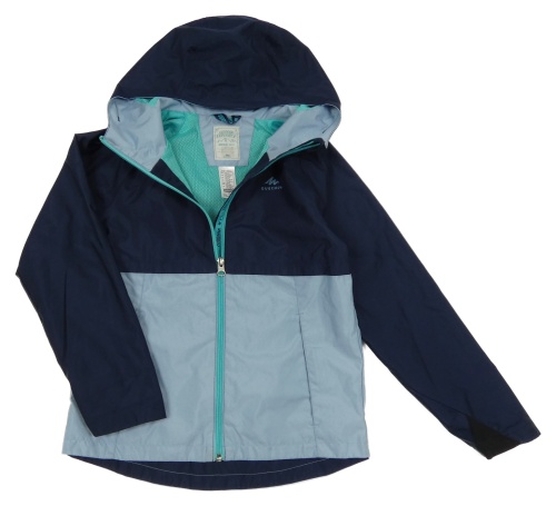 Tmavomodro-svetlomodrá šušťáková jarná funkčná bunda s kapucňou Quechua