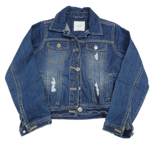 Modrá rifľová crop bunda s vyšúchaním Next