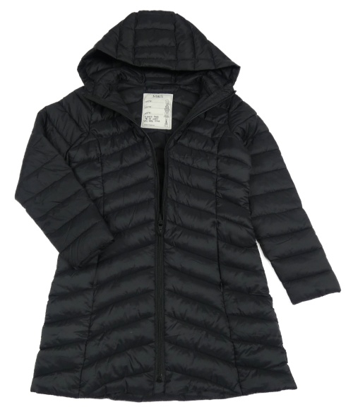 Čierny šušťákový prešívaný ľahký zateplený kabát s kapucňou M&S