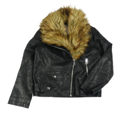 Čierny koženkový jarný crop krivák s kožušinovým golierom Matalan