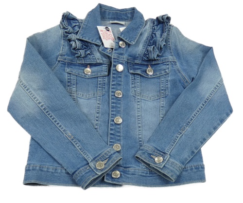 Nové - modrá tepláková rifľová crop bunda s volánikmi a golierikom Matalan