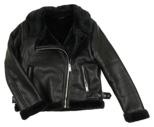 Čierny zateplený koženkový krivák s kožešinou F&F