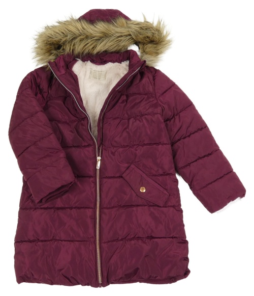 • Vínový prešívaný šušťákový zimný kabát s odopínacíá kapucňou s kožešinou John Lewis