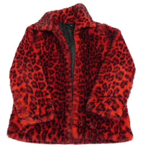 Červeno-čierny kožušinový podšitý kabát s leopardím vzorom George