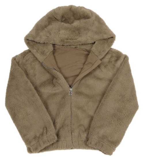 Hnedošedé á kožušinová podšitá crop bunda s kapucňou Nutmeg