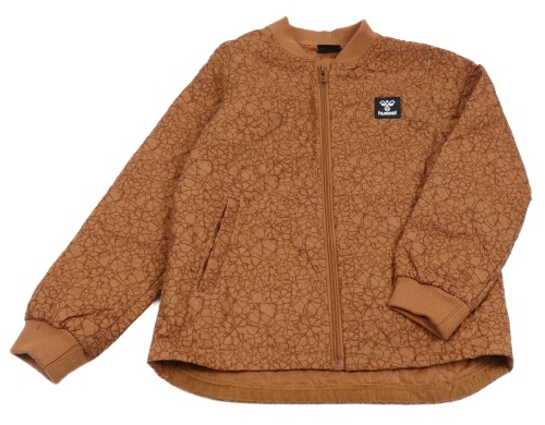 Medovo-mahagónovoá vzorovaná prešívaná šušťáková zateplená bunda s nášivkou hummel
