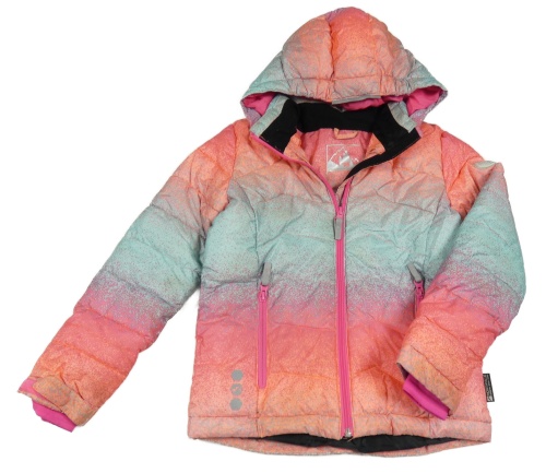 Korálovo-mátovo-ružová skvrnitá prešívaná šušťáková zimná lyžiarska bunda s kapucňou C&A