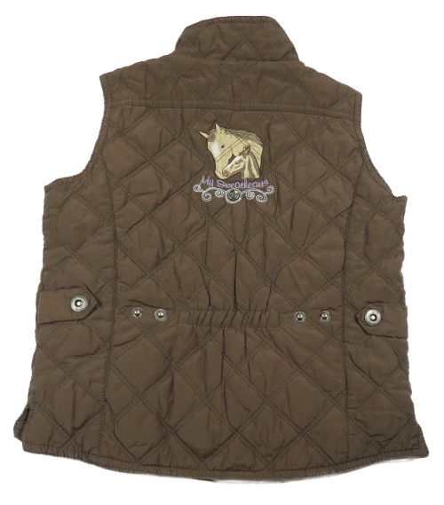 Hnedá šušťáková prešívaná lehce zateplená vesta s koněm