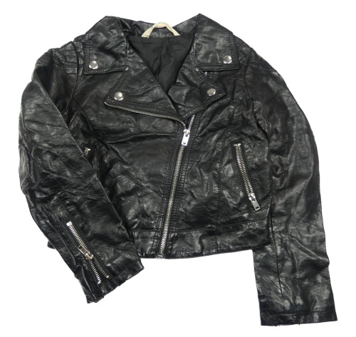 Čierny koženkový jarný crop krivák s golierikom H&M