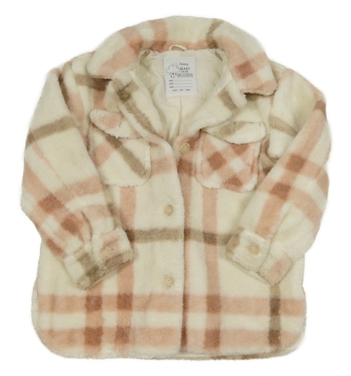 Bielo-ružovo-béžová kockovaná huňatá podšitá bunda Nutmeg