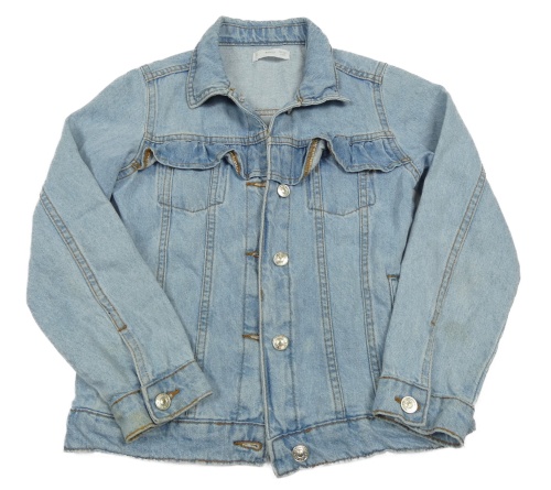 Svetlomodrá rifľová bunda s volánikmi Mango
