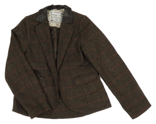 Hnedé vzorované kockované vlnené podšité sako