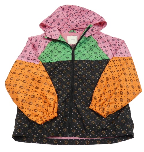 • Čierno-zeleno-ružovo-oranžová šušťáková jarná bunda so srdiečkami a kapucňou Next