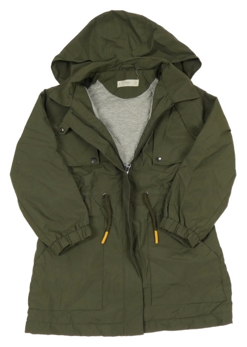 Tmavokhaki šušťáková jarná zateplená parka s golierikom a kapucňou MANGO