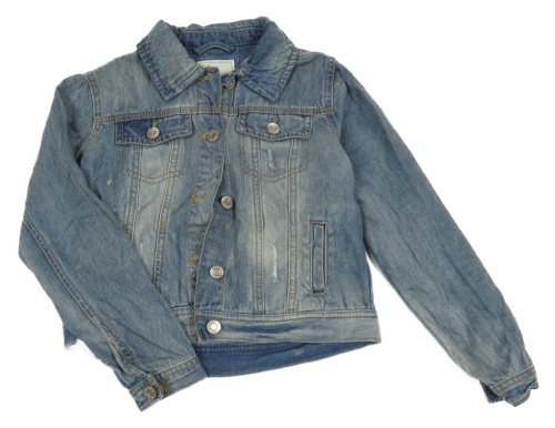 Modrá rifľová crop bunda s vyšúchaním a golierikom Next