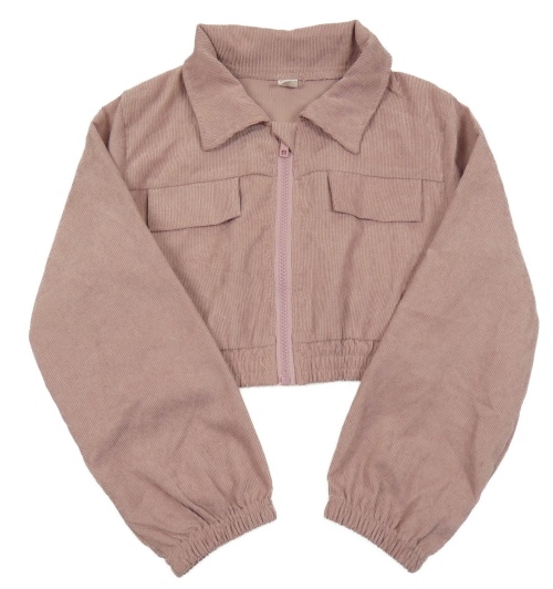 Staroružová rebrovaná crop ľahká bunda s kapucňou Shein