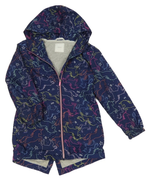 Tmavomodrá šušťáková jarná parka s jednorožcami a kapucňou Next
