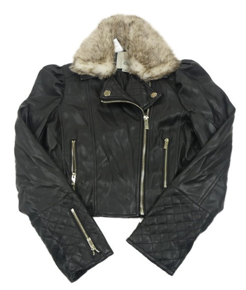 Čierna koženková crop bunda s kožešinou River Island