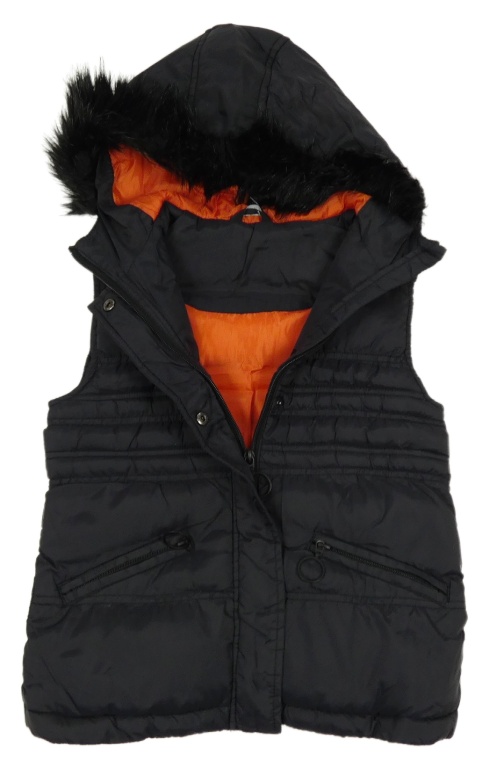 Čierna šušťáková zateplená vesta s kapucňou s kožešinou M&Co.