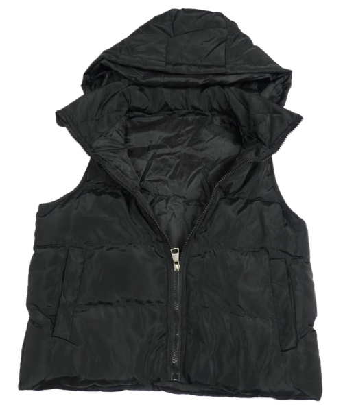 Čierna šušťáková zateplená vesta s kapucňou Shein