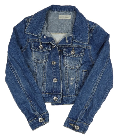 Tmavomodrá rifľová crop bunda s vyšúchaním