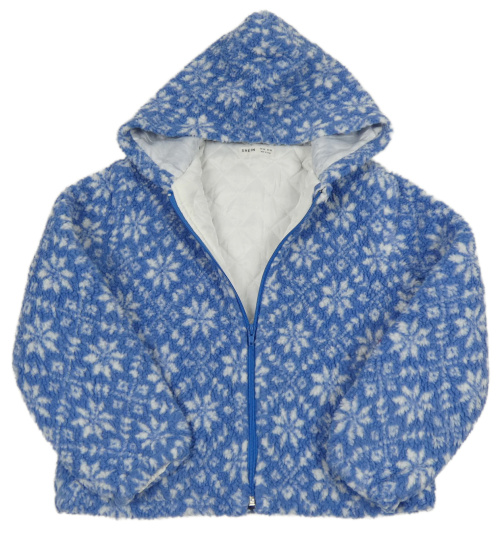 Modrá vzorovaná huňatá podšitá bunda s kapucňou Shein