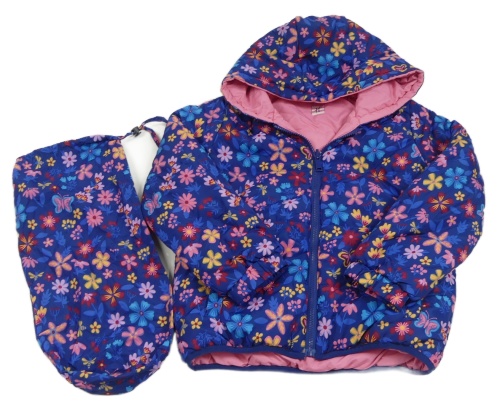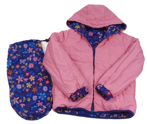 • 2set - Ružová šušťáková zateplená obojstranná bunda s kapucí + modrý květovaný sáček