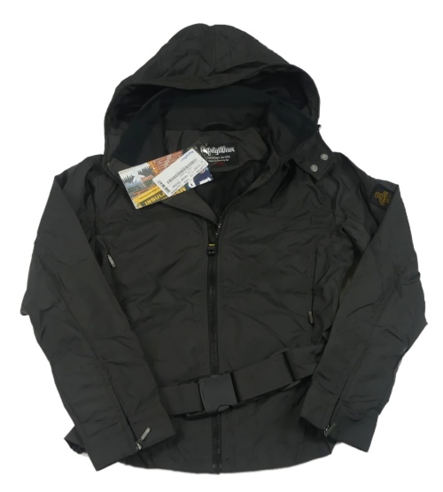 • Nová - čiernošedá šušťáková jesenná bunda s opaskom a odopínacíá kapucňou