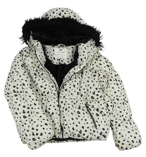 Smetanovo-čierna flekatá zimná kombinéza s kapucňou s kožešinou F&F