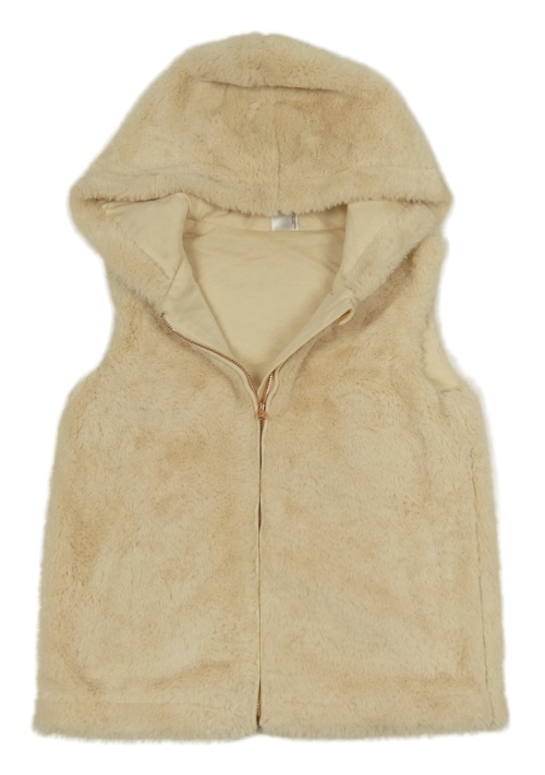Vanilková kožušinová podšitá vesta s kapucňou C&A