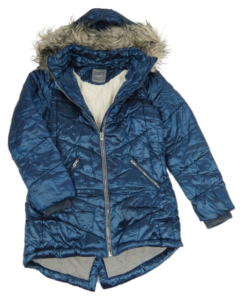 • Petrolejová prešívaná šušťáková zimná parka s nášivkou a kapucňou s kožešinou Next