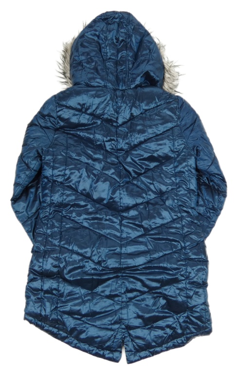 Petrolejová prešívaná šušťáková zimná parka s nášivkou a kapucňou s kožešinou Next