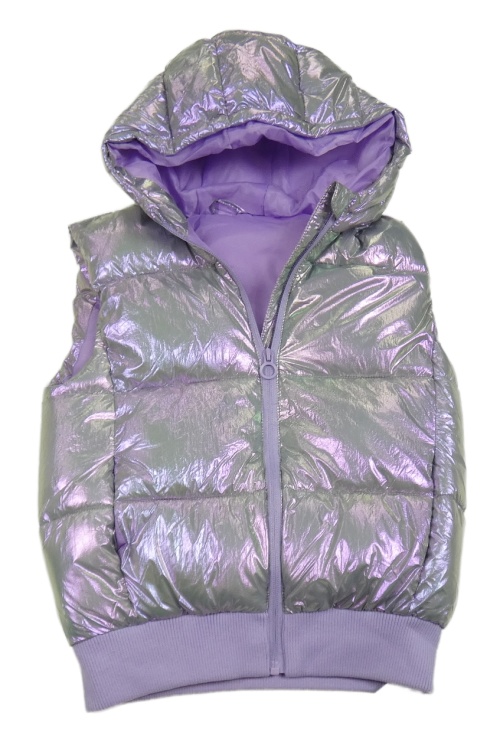 Nové - Fialová šušťáková prešívaná zateplená vesta s kapucňou Dunnes