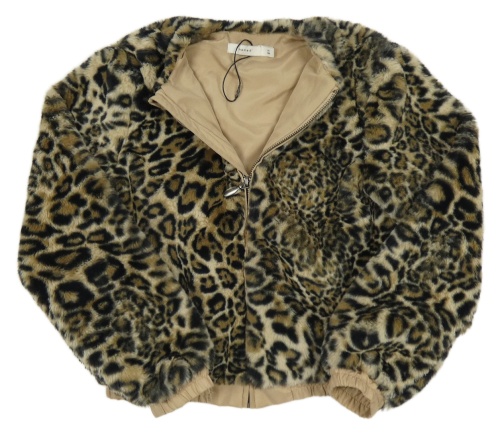 Nové - béžovo-čierna leopardí kožušinová podšitá bunda Name it