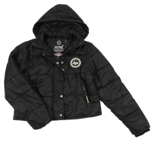 Čierna šušťáková prešívaná zimná crop bunda s logom a kapucňou Hype