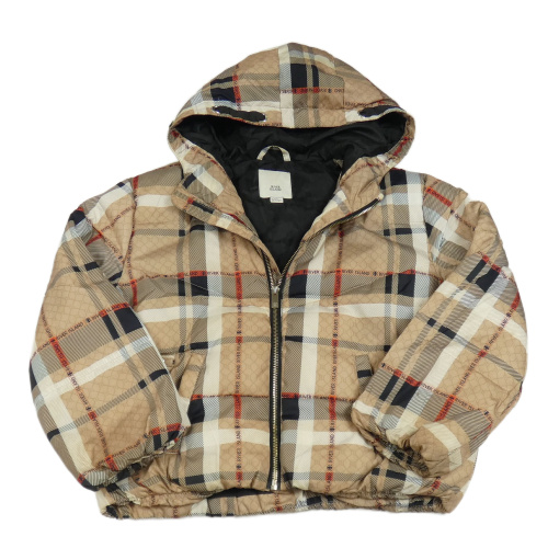 • Hnedo-čierno-krémová kockovaná šušťáková zimná bunda s kapucňou River Island